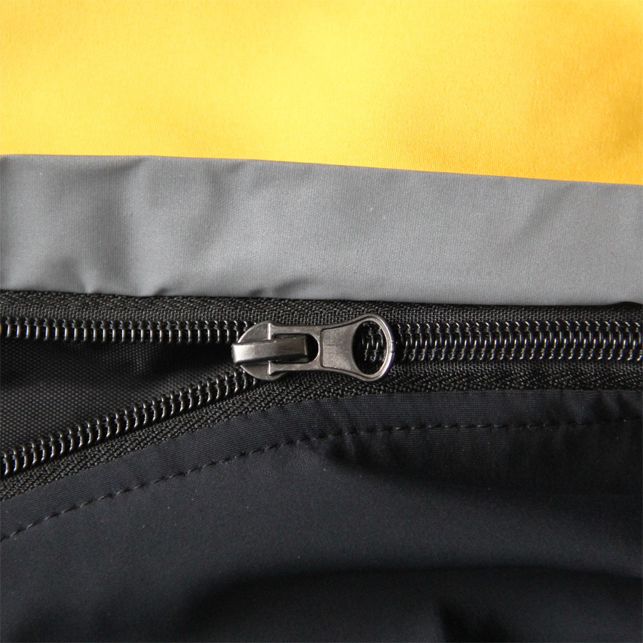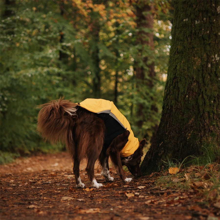De softshell body is niet alleen functioneel, maar ook veilig en praktisch. Aan beide zijden van de jas zijn handige ritssluitingen geplaatst, ontworpen om te voorkomen dat de vacht van je hond vast komt te zitten bij het aan- en uittrekken. Dit maakt het aankleden van je hond snel en moeiteloos. Boven de ritsen bevindt zich een reflecterende strip, die extra zichtbaarheid biedt tijdens avondwandelingen of in slechte lichtomstandigheden. Hierdoor is je hond beter zichtbaar voor verkeer, wat zorgt voor extra veiligheid.