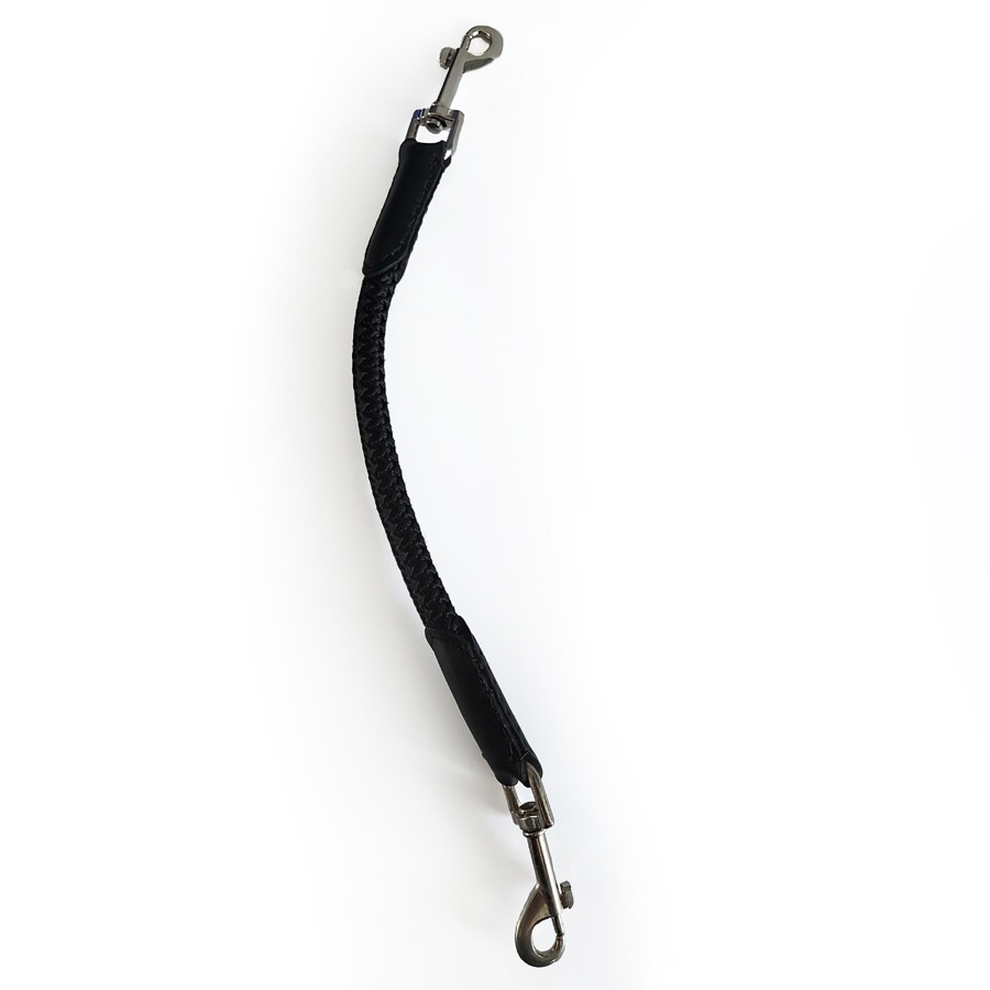 Mocht halsband, hondenriem of tuig losschieten dan zitten de andere onderdelen door dit koppelstuk altijd nog bevestigd aan elkaar.