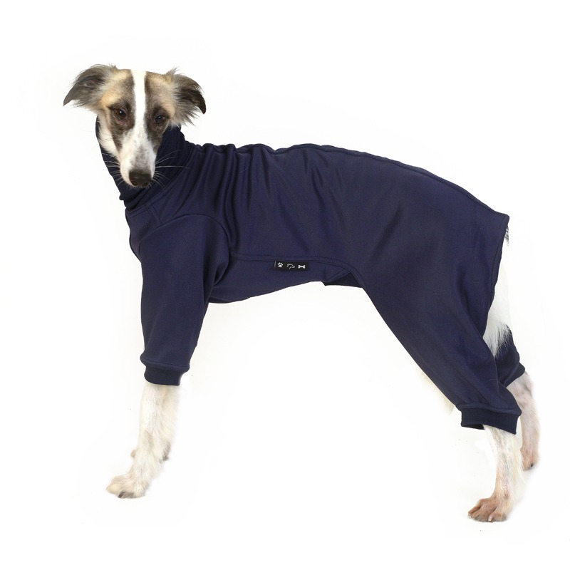 Geef je hond de ultieme warmte en comfort met deze behaaglijke donkerblauwe pyjama met vier poten. Gemaakt van zachte joggingstof, biedt deze pyjama je windhond heerlijke warmte en geborgenheid. De stof is ademend en warm, perfect voor zowel een ontspannen dutje als een frisse wandeling.