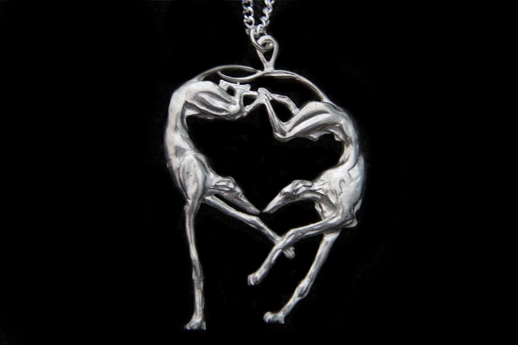 Een uniek sieraad voor de echte windhondenliefhebber! Deze ketting is voorzien van een bijzonder gedetailleerde hanger van twee windhonden. De honden lijken wel samen te dansen. Door het herkenbare silhouet van de honden is deze ketting een elegante blikvanger, perfect voor iedereen die een passie heeft voor deze sierlijke honden.